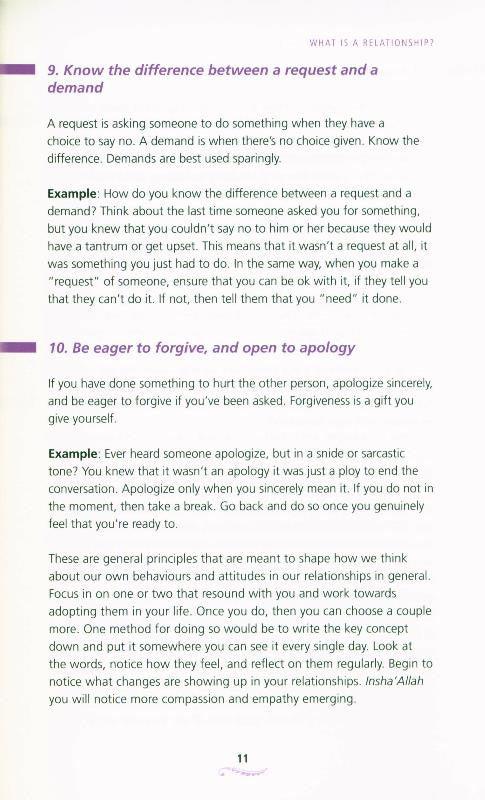 Discover the Best in your Relationships provides you with practical strategies to return any difficult relationships around. Sayeda Habib introduces general concepts that apply to all relationships and then addresses specific relationship areas in detail. She lays out practical exercises that will help you enhance the relationships that matter most. You will learn to develop more self-compassion, let go of any old-baggage with siblings, develop communication skills, reduce the impact of stress in your relationships, learn strategies for tantrum-free parenting, combat emotional blackmail and more. Examples from the Quran and the Hadith , along with personal case studies, provide valuable inspiration to help transform any strained relationships.