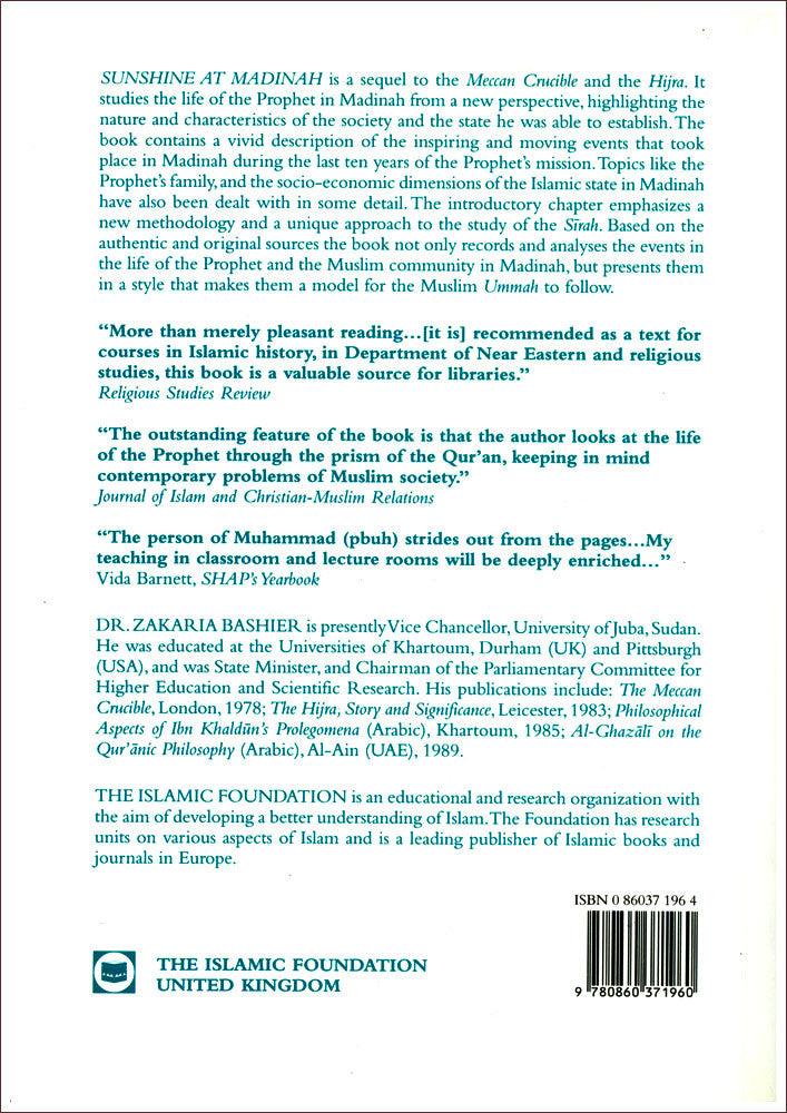 A sequel to The Life of the Prophet in Makkah and Hijra, it presents the life of the Prophet in Madinah from a new perspective, highlighting the nature and characteristics of the society and the state he was able to establish. The book contains a vivid description of the inspiring and moving events that took place in Madinah during the last ten years of the Prophets mission. The outstanding feature of this book is that the author looks at the life of the Prophet through the prism of the Quran keeping in mind contemporary problems of Muslim society.