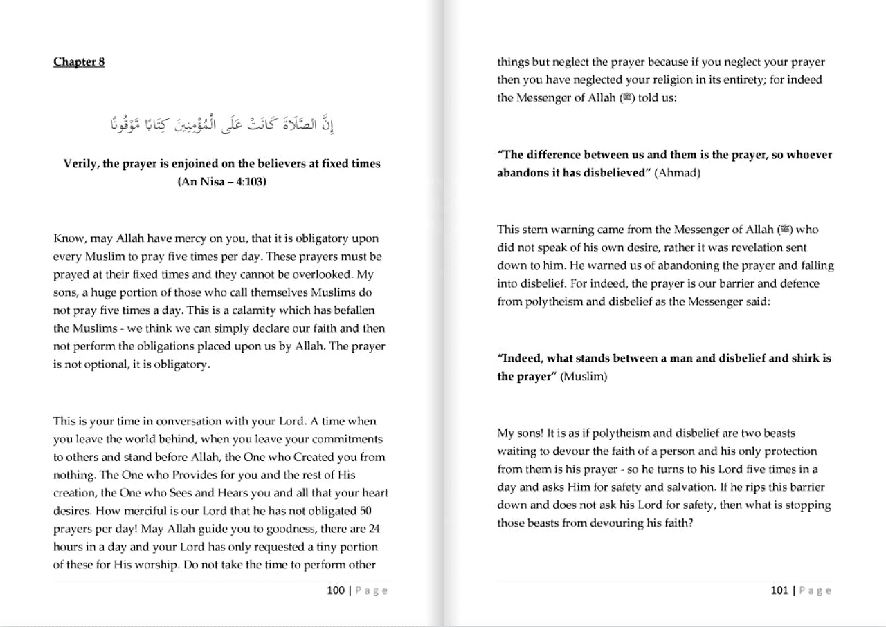 In this book, the author touches on a wide variety of topics that hold vast importance in the life of every Muslim. The book is written as an advice from a father to his sons' but the subject matter is applicable to all people.