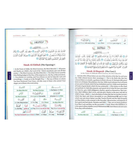 The Noble Quran Rainbow Transliteration in Roman Script Medium Size 14x20
