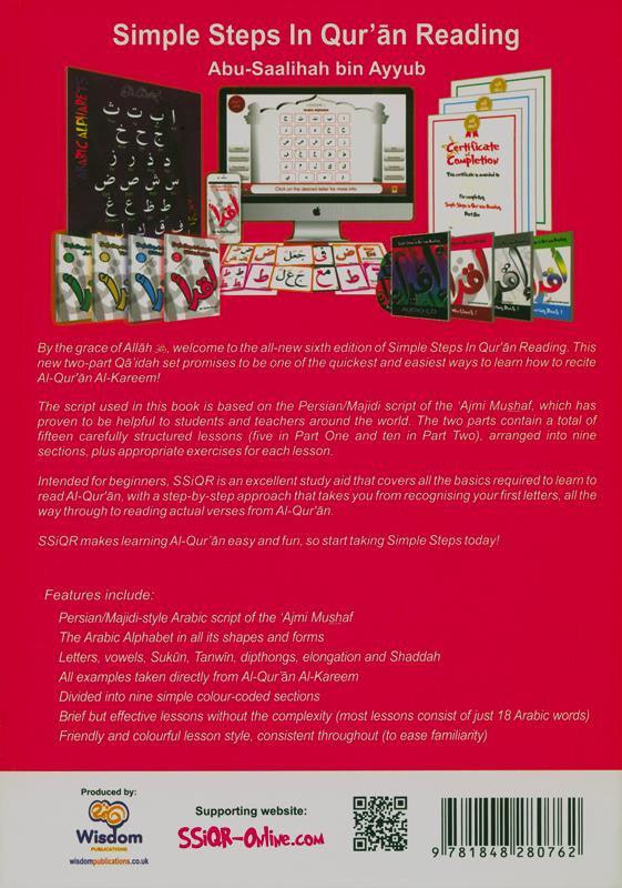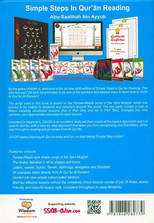 The complete edition of 'Simple Steps In Qur'aan Reading'. As the name suggests, only a few simple steps are required to correctly recite and pronounce the Arabic alphabet letters directly from the Qur'aan.
