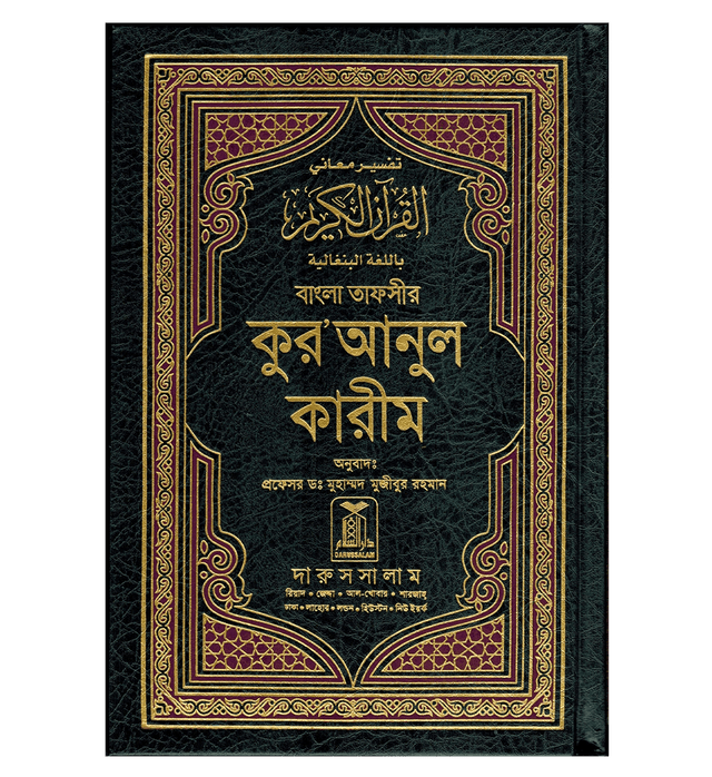 It is an interpretation of the meanings of the Quran in the Bengali language. The Persian script is in the large Arabic writing along with the Bengali translation on the left side with notes on the bottom. The official language of the Bangladesh is Bengali.