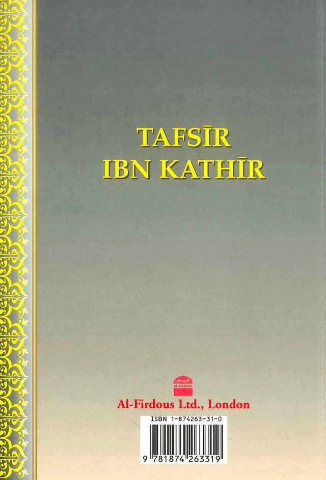 Tafsir Ibn Kathir (Firdous) (11 Parts/ Juz) - All Currently Available Translations. Juz/Parts 1 to 11 Surah Al-Fatiha To Surah At-Tawbah: 9: 296 Each Volume consists of One Juz/ Part (Separate) of the Qur'anSurah Fatiha to Surah al-Baqarah 2: 141 304 Surah al-baqarah 2: 142 to 252 292 Surah al Baqarah 2: 253 to Surah al-Imran 3: 92 292 Surah al-Imran 3: 93 to Surah An-Nisa 4: 23 296 Surah An-Nisa 4: 24 to 147 289 Surah An-Nisa 4: 148 to Surah al-Maidah 5: 81 295 Surah Al-Maidah 5: 82 to Surah Al-An'am 6: 110 288 Surah al- An'am 6:111 to Surah al-A'raf 7:87 293 Surah Al-A'raaf 7:88 to Surah Al-Anfal 8: 40 296 Surah Al-Anfal 8: 41 to Surah At-Tawbah,(9): 90 296 Surah Al- Tawbah 9:91-129, Surah Yunus & Surah Hud (11):1-5 The Tafsir of Ibn Kathir is the most renowned and accepted explanation of the Qur’an. In it one finds the best presentation of Hadiths, history, and scholarly commentary. It is one of the few Classical Tafsir's which have been rendered in to English. There are two different English Translations of Tafsir Ibn Kathir One Published by Dar-us-Salaam in Hardback and this one by Al-Firdous in Paperback, both abridged but this one is much more detailed with less abridgement. Read an excerpt of Surah Al-Baqarah Ayah 153-154