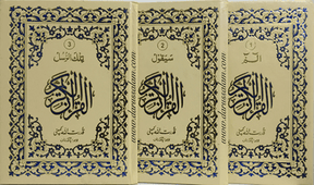 26C This is a beautiful set of 30 individual books (Juz' or Siparah) of the Holy Qur'an (240A). with 10 lines printed in EXTRA large Persian (Pakistani) script on a beautiful art paper. This set is excellent for young children learning to read the Qur'an and those who may have weak eyesight. A beautiful HADYAH to donate to Masaajid (Mosques) for SADQAH JARIYAH. learning the Holy Quran