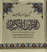 Holy Quran 30 Para SetVendor: Qudratullah CompanyAl Quran Al hakeem 30 Para Set 26C Holy Quran 30 Para set Art paper by Qudratullah Company This is a beautiful set of 30 individual books (Juz' or Siparah) of the Holy Qur'an (240). Size of Quran is 24 x 18 cm and...