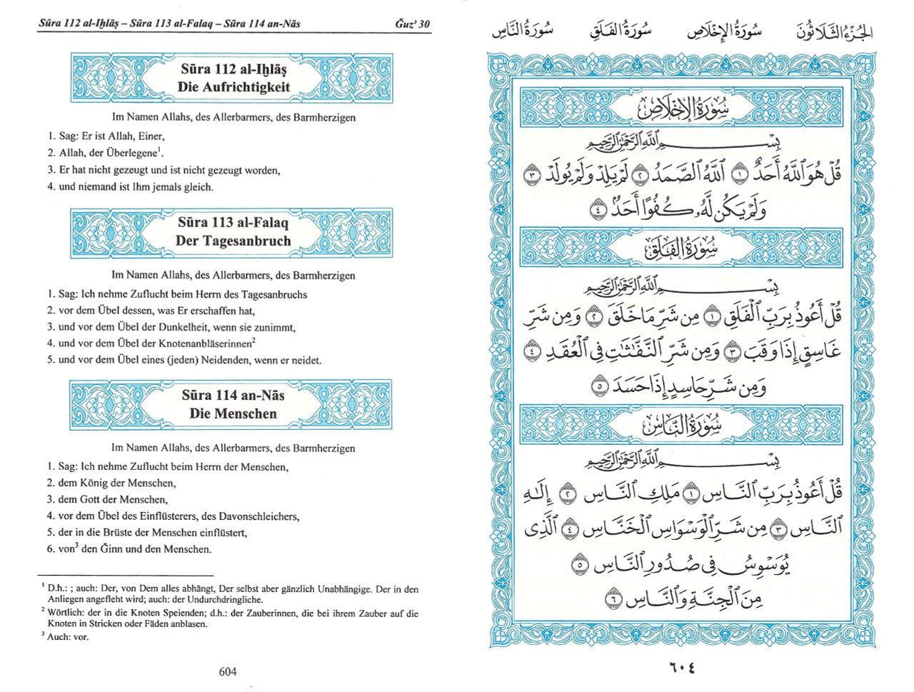 Die Übersetzung des Qur´ans von Dr. Nadeem Elyas und Frank Bubenheim wurde als bisher einzige Übersetzung in den 1980er durch das saudische Religionsministerium in Auftrag gegeben und beglaubigt. Zugleich wird diese Übersetzung direkt in der für Muslime aller Welt heiligen Stadt Medina von der berühmten König Fahd Qur´an Druckerei verlegt. Seither gilt sie durch ihre konsequente Nähe zum arabischen Originaltext und gerade wegen der ausführlichen Kommentierung mit Übersetzungsalternativen, ohne dabei Einbußen bei der Lesbarkeit einstreichen zu müssen, als die bewährteste Übersetzung im gesamten deutschsprachigen Raum. Textlich ist diese Ausgabe multilingual aufgebaut, soll bedeuten, der arabische Originaltext wird jeweils auf der rechten Seite gezeigt, während selbiger Text parallel auf der linken Seite ins Deutsche übersetzt wird.