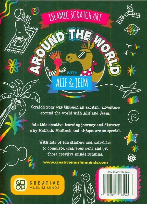 the three most significant masjids in the world. Explore along with your own masterpieces as you scratch away to discover the surprise rainbow colours beneath the black-coated pages!