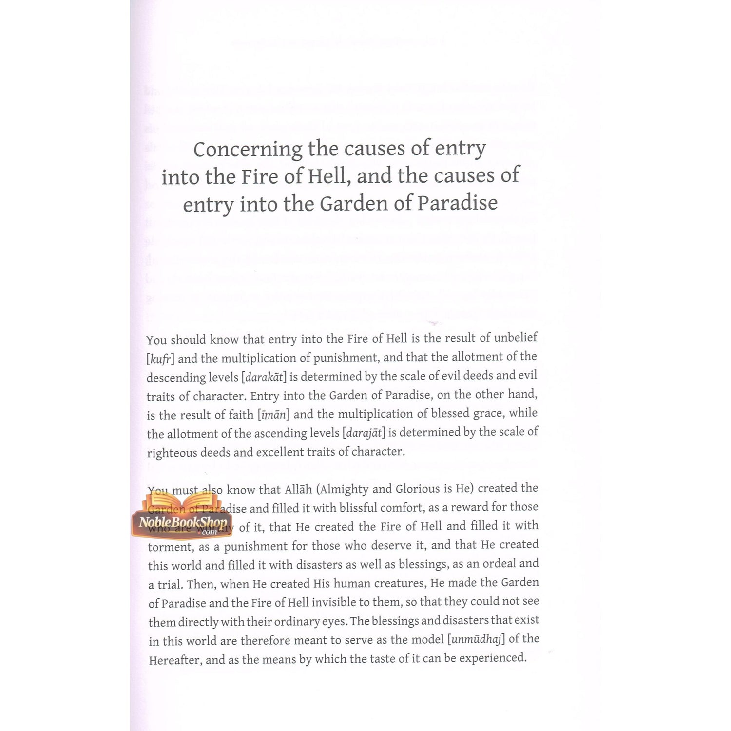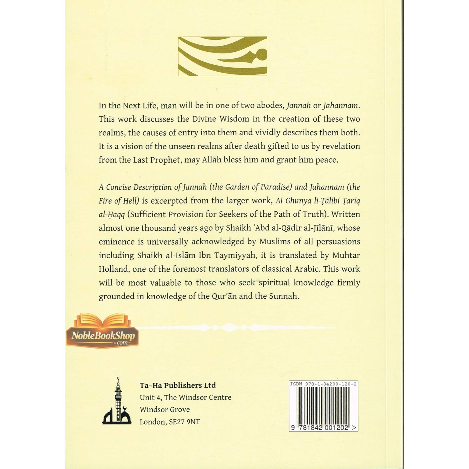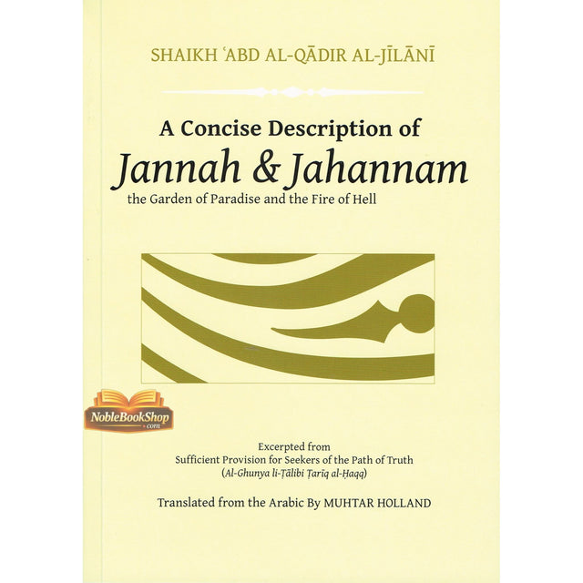 A Concise Description of Jannah (the Garden of Paradise) and Jahannam (the Fire of Hell) is excerpted from the larger work, Al-Ghunya li-Talibi Tariq al-Haqq (Sufficient Provision for Seekers of the Path of Truth). Written almost one thousand years ago by Shaikh 'Abd al-Qadir al-Jilani, whose eminence is universally acknowledged by Muslims of all persuasions including Shaikh al-Islam ibn Taymiyyah, it is translated by Muhtar Holland, one of the foremost translators of classical Arabic. This work will be most valuable to those who seek spiritual knowledge firmly grounded in knowledge of the Qur'an and the Sunnah.