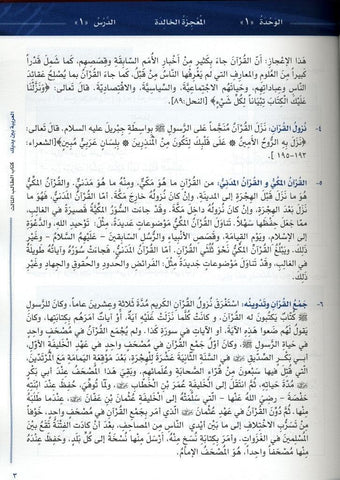 Arabic at Your Hands Series is developed for educational entities, including schools, institutes and universities. It begins from the basic level and continues with the students until they master Arabic language, which enables them to join university and continue their Arabic studies in various majors. The third level consists of two parts (books), each of which includes 8 units (total of 16 units). Each unit consists of 7 lessons, constituting a total of 112 basic lessons in this level. The lessons of each unit are organized as follows: - The lessons of each unit are organized as follows: - Rich comprehension text and exercises 3 pages - Vocabularies and expression 3 pages - Language rules (1) and exercises 3 pages - Listening exercises 2 pages - Oral and writing expression exercises 2 pages - Dictation 2 pages - Language rules (2) and exercises 3 pages Total of 18 pages per unit Tests and evaluations: The third level (part 1 and 2) comprises 5 tests as follows: 1. Level determining test at the beginning of the first book to determining the student’s level and his ability to begin the third level. 2. Small test at the middle of the first book. 3. Midlevel test at the end of the first book. 4. Small test at the middle of the second book. 5. Final comprehensive test at the end of the second book. At the end of the third level, there are lists of vocabulary used n each unit and another list of all the vocabularies of the level arranged alphabetically. It also includes comprehension texts and an audio CD (8 hours) for all text and some exercises used in this level.
