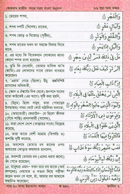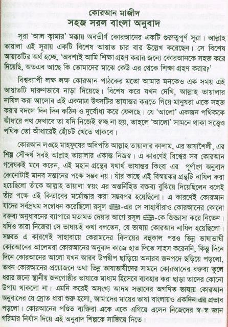 Al Quarn Al Kareem (Simple Bengali Translation)