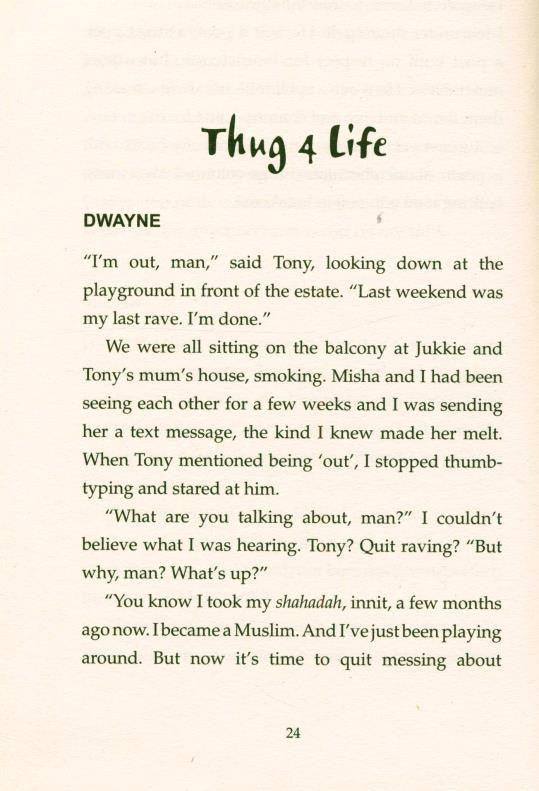 Dwayne, 16, meets high-flying, uni-bound Misha, and sparks fly. To Misha it feels like true love, but her mum is adamant that Dwayne is bad news and forbids her to see him. When Misha decides to follow her heart, the web of secrets and lies begins to tighten…. For Dwayne is not quite who he says he is. And as he struggles to turn his life around while hiding his darker side from Misha, his ties with Trigger, Jukkie and the rest of his boys draw him deeper and deeper into gang violence, more serious and bloody than any he has ever seen. One night, Dwayne’s two lives collide, with devastating consequences.