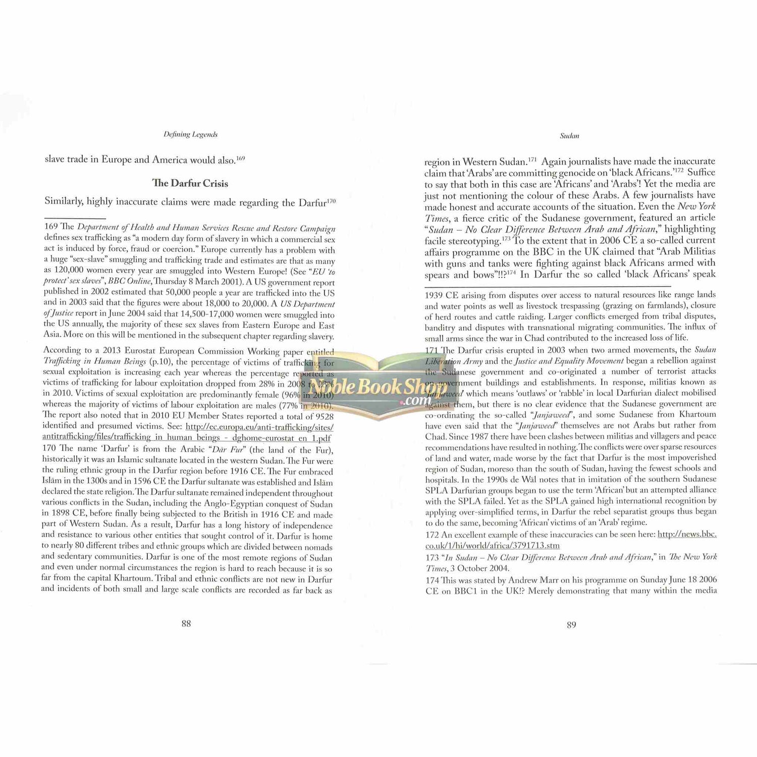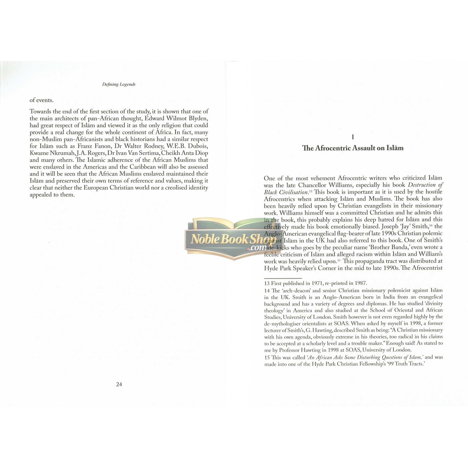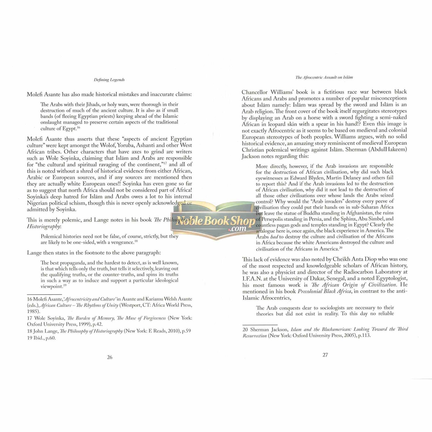 Since the 1960s there has been a rapid and phenomenal increase of people in the West embracing Islām and the majority of those in the West who are turning to Islām are people of African origin in the UK and the USA. At the same time, Afrocentric ideology has also spread in the West which has, since the 1970s, argued that Islām itself was a religion of Arab conquerors that plundered Africa to the detriment of the African peoples themselves and this (Kemet Afrocentricity, various Hebrew Israelite cults or ‘black Orientalism’) has emerged to counter this growth of people of African origin turning to Islām. Defining Legends will critically evaluate mainstream black Orientalism and extremist Afrocentric claims about Islām and bring new evidence to challenge their false assumptions. The documentary evidence presented in some Afrocentric literature about Islām will be analysed and dismissed where necessary. This study will mainly dismiss the anti-Islamic trend within some Afrocentric perceptions of Islām along with recourse to more corroborated criteria and demonstrate the incoherence of their arguments against Islām. Defining Legends also demonstrates how much of Afrocentric thought regarding Islām is in fact entrenched in a Eurocentric origin, therefore based upon anti-Islamic European Christian, Freemasonic and Zionist sources. This book originally consisted of 75 pages during the year 1999, growing to its current size due to the author adapting, rejecting and supplementing material and reflecting upon the core themes of the book.