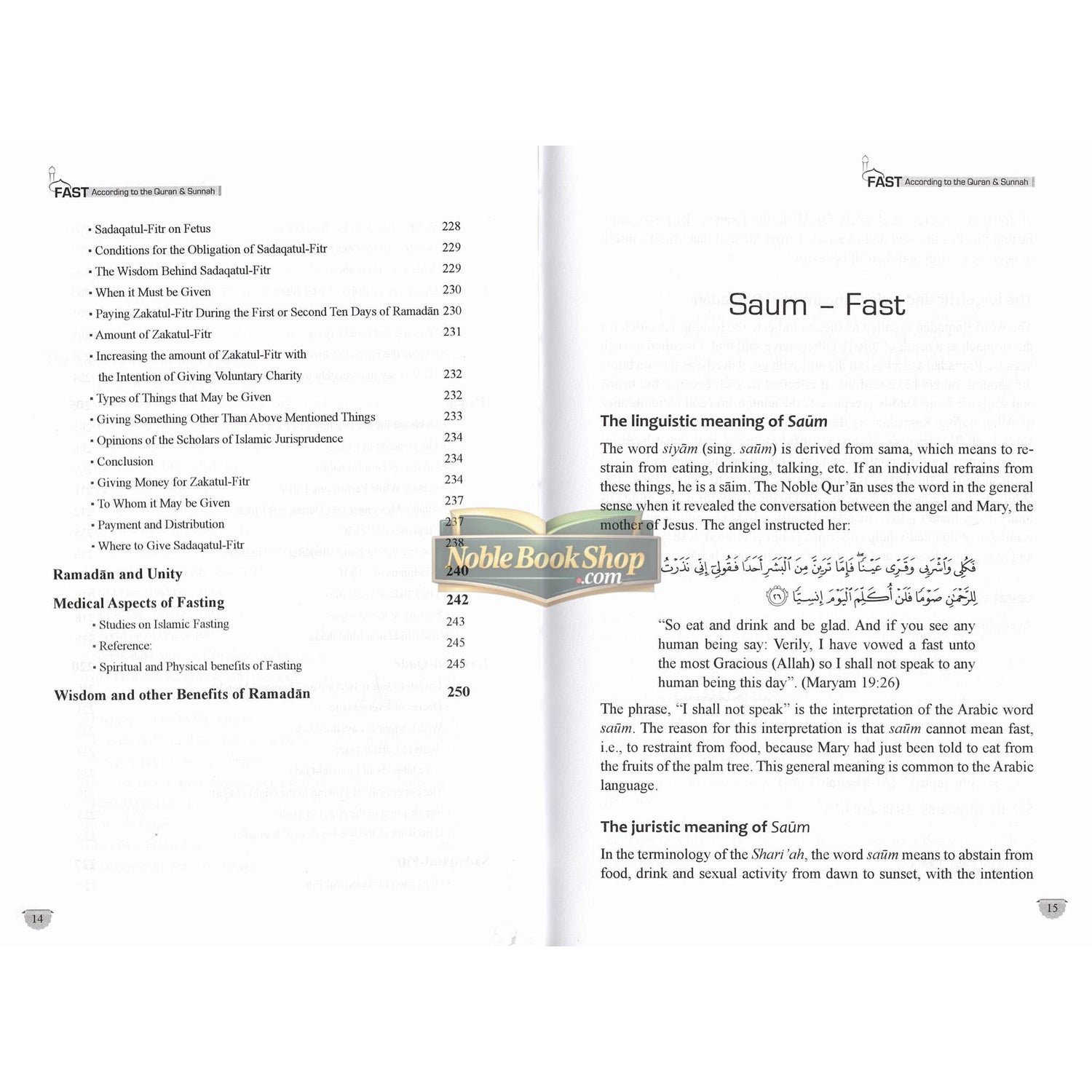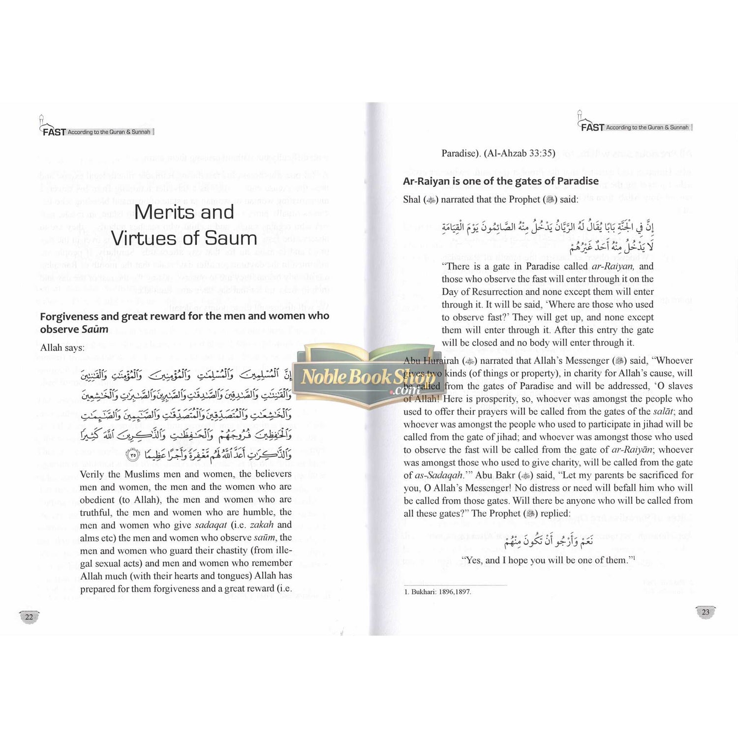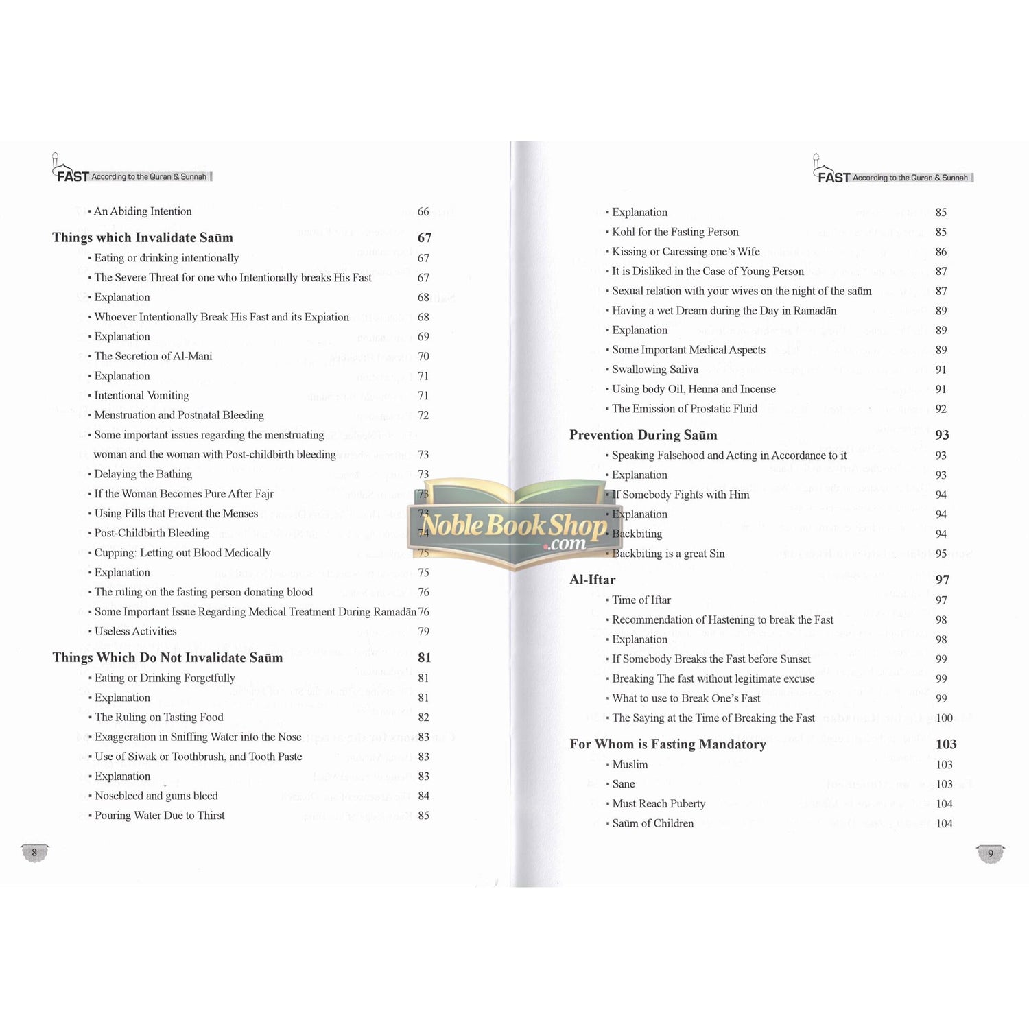 25A The Prophet صلی الله علیه وآلهِ وسلم said, "(ALLAH said), 'every good deed of the son of Adam is for him except fasting; it is for Me. and I shall reward (the fasting person) for it.' Verily, the smell of the mouth of a fasting person is better to Allah than the smell of musk." [Bukhari] As the status of this act of worship is so high, that it is essential to learn the rulings pertaining to this month of fasting, so that the Muslims may know what is obligatory in order to do it. What is forbidden and thus avoid it, and what is permissible so that they do not unnecessarily subject themselves to any hardship by depriving themselves from it. This book consists of all the main issues of Fasting. The main objective of this work is to serve as an easy guide and authentic reference to the reader.