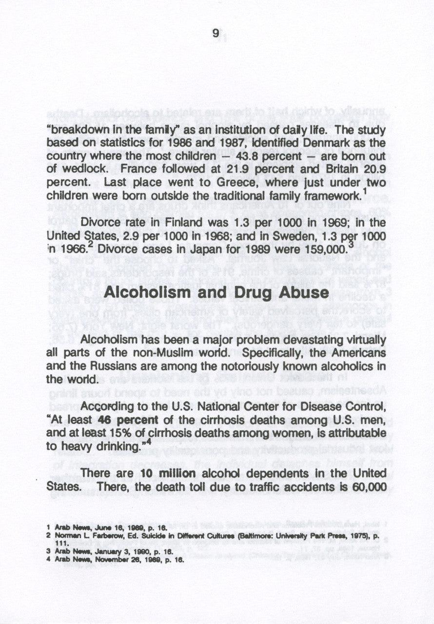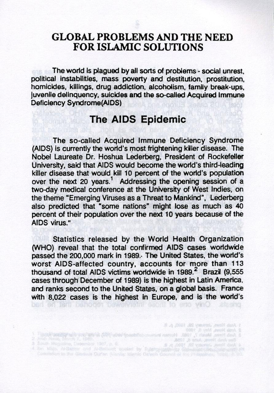 Today, even the Muslim society is, in general, at variance with real Islam. Yet, the teachings of Islam cater to the needs of humanity, and the problems affecting modern society can be solved through proper implementation of Islamic Law. The world is plagued by social unrest, poverty, prostitution, crime, drug addictions, family break-ups, and diseases such as AIDS. The author gives the statistics of this crisis and discusses some of the reasons that these situations exist, and then gives the solutions for these problems from the divine guidance of Islam. The author asks: How can current global problems can be solved through Islam, when Muslims themselves do not implement it? He makes a passionate plea for Muslims to think ‘global’, break down the barriers to their unity and brotherhood, and adhere to the Qur’an and Sunnah. By doing so, they can revive the golden age of the Muslim Ummah. Then, non-Muslims will take notice and be able to appreciate the wisdom and beauty of Islam.