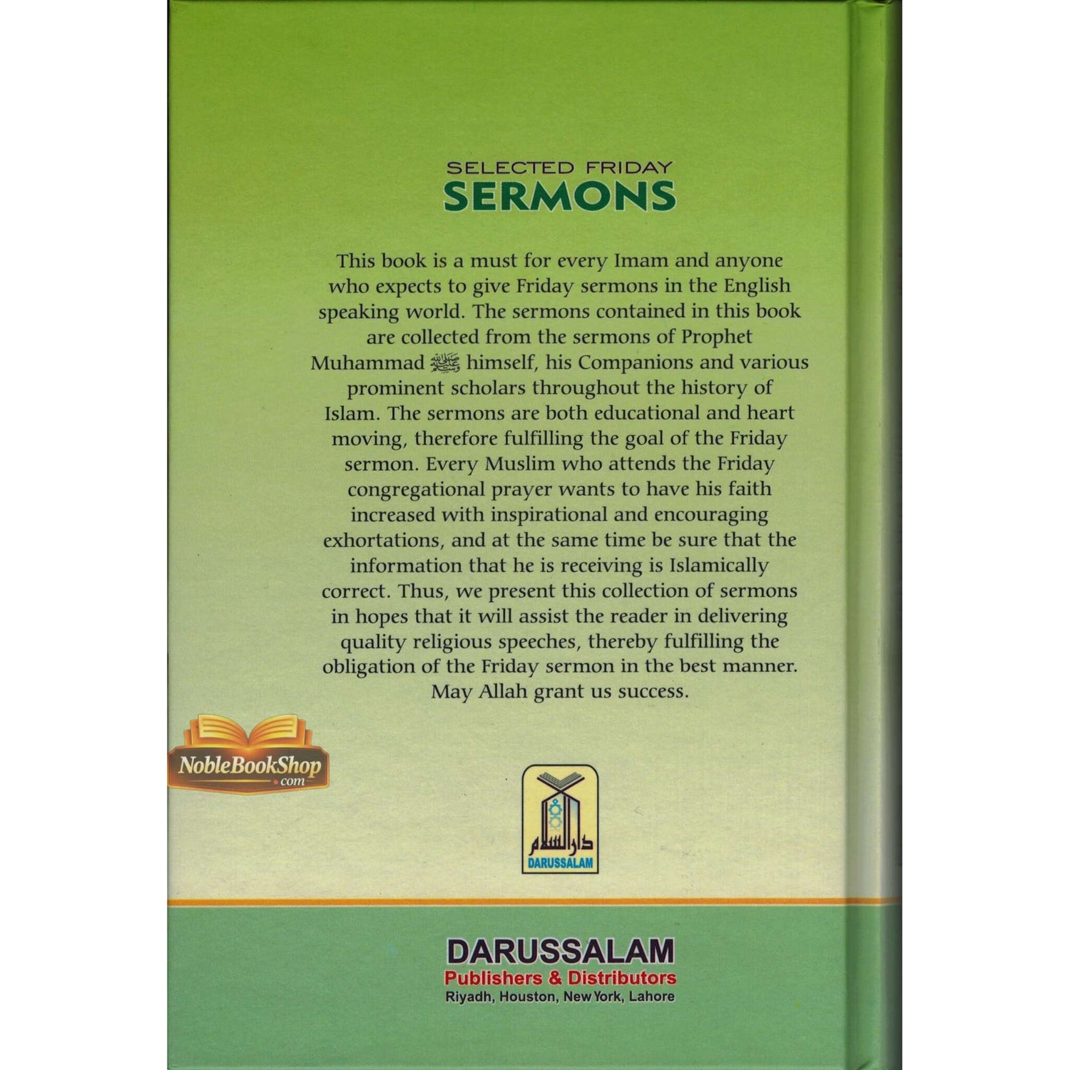 24A This book is a must for every Imam and anyone who expects to give Friday sermons in the English speaking world. The sermons contained in this book are collected from the sermons of Prophet Muhammad (S) himself, his companions and various prominent scholars. The sermons are both educational and hearth moving, therefore fulfilling the goal of the Friday sermon. Every Muslim who attends the Friday congregational prayer wants to have his faith increased with inspirational and encouraging exhortations, and at the same time be sure that the information that he is receiving is Islamically correct. Thus, we present this collection of sermons in hopes that it will assist the reader in delivering quality religious speeches, thereby fulfilling the obligation of the Friday sermon in the best manner. May Allah grant us success.