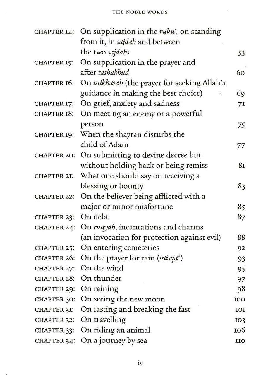 Translation of the well known book in Arabic - al-Kalimah al-Tayyib. 'In our determination to always act as good Muslims, always remember Allah in even the most basic of our daily activities, we can benefit from sound guidance and instruction. In this collection of ahadith -The Noble Words - originally compiled by ibn Taymiyah, on the basis of an earlier work by Imam an-Nawawi, we have the assistance we need. Al-Kalim at-Tayyib is recognised as one of the best books on the subject of supplication and remembrance of Allah and is comprehensive in its coverage dealing with a vast range of topics. This translation consists of the Arabic text together with its English translation making it accessible to both young readers and adults alike. In just one volume, we not only have practices of the Prophet, his Companions and later Muslims to draw upon our actions, but also have relevant verses from the Qur'an to help us move ever closer to Him. A valuable addition to every Muslim home.